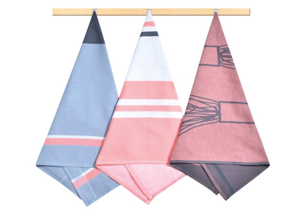 Kuchyňské utěrky - sada 3 kusů Šedá,Lososová,Bílá 136