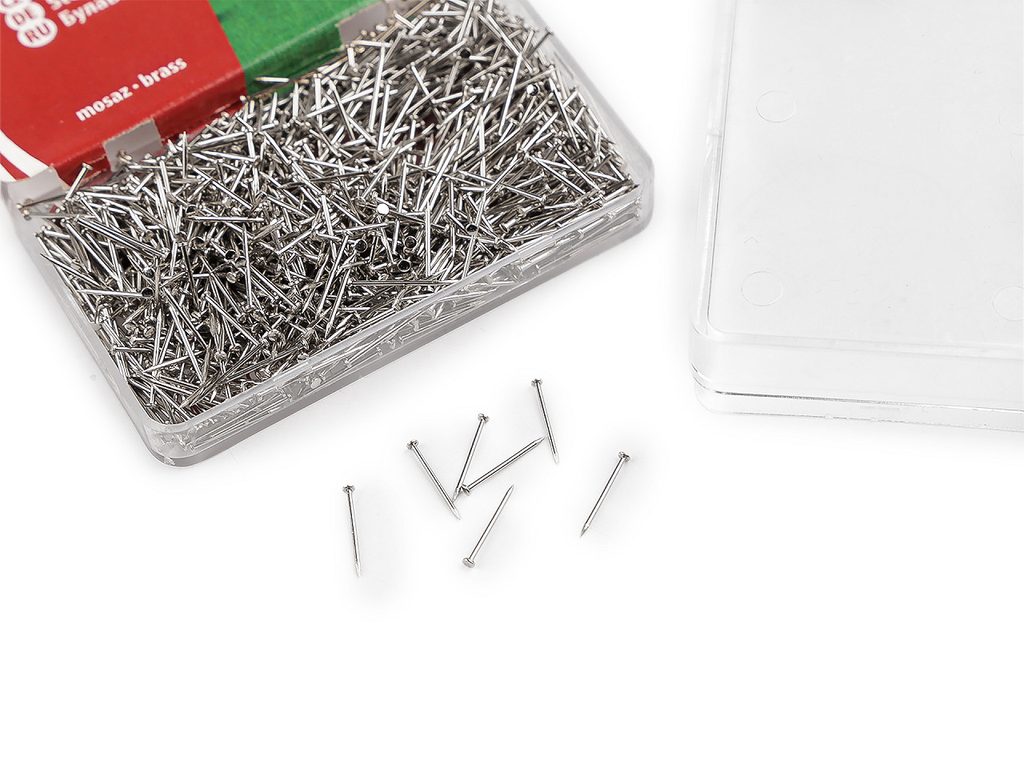 Krátké mosazné špendlíky využijete na nešitý patchwork i k aranžování drobnějších dekorací, protože díky své velikosti jsou velmi nenápadné. Mají ostrou špičku.