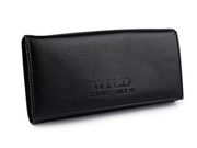 Peněženka má přední stranu na klopu se zapínáním na patent. Po otevření se objeví 8 přihrádek na kreditní karty, 2 jsou průhledné. Za přihrádkami po pravé straně je dlouhá přihrádka. Po rozevření naleznete 3 velké kapsy rozdělené separací a 1 kapsu na zip. Další kapsa na zip slouží jako mincovník.