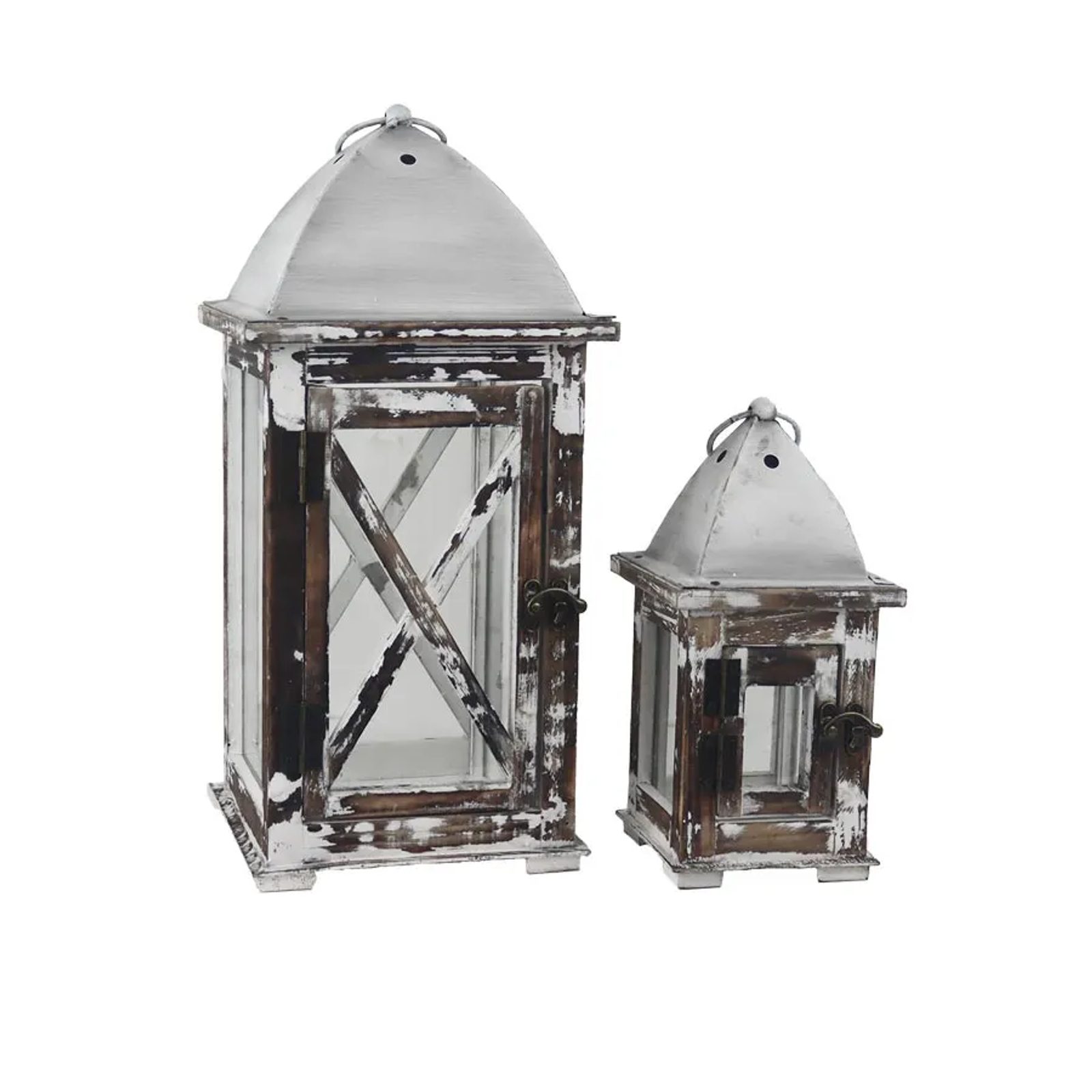 Sada 2 ks dřevěná lucerna, S/2 D7085 - výška 23,5 cm, 40 cm