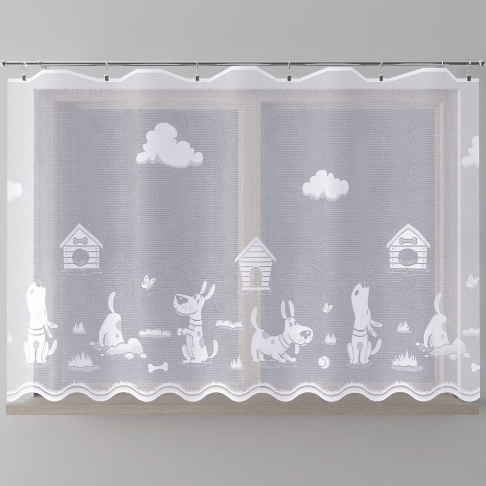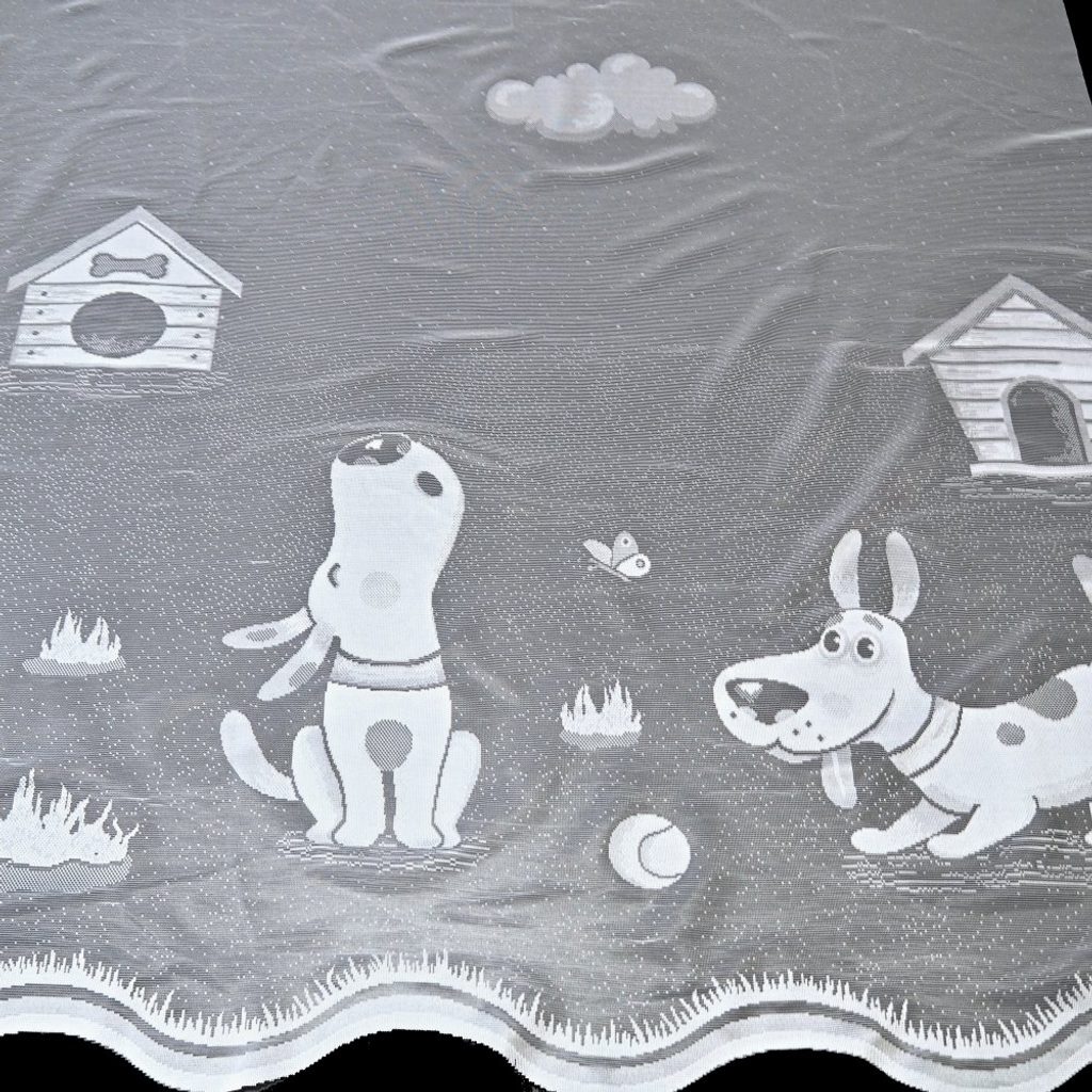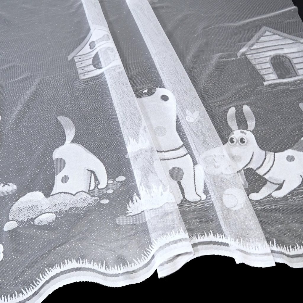 Roztomilá kusová, žakárová záclona s hravým motivem pejska potěší všechny malé milovníky těchto čtyřnohých kamarádů. Svým veselým a hravým designem rozzáří a zpříjemní každý dětský pokojíček, dodá mu útulnou atmosféru a přinese do něj kousek zábavy. Kusová záclona je opatřena řasící stuhou F1 s pravidelnými sklady 1:2.