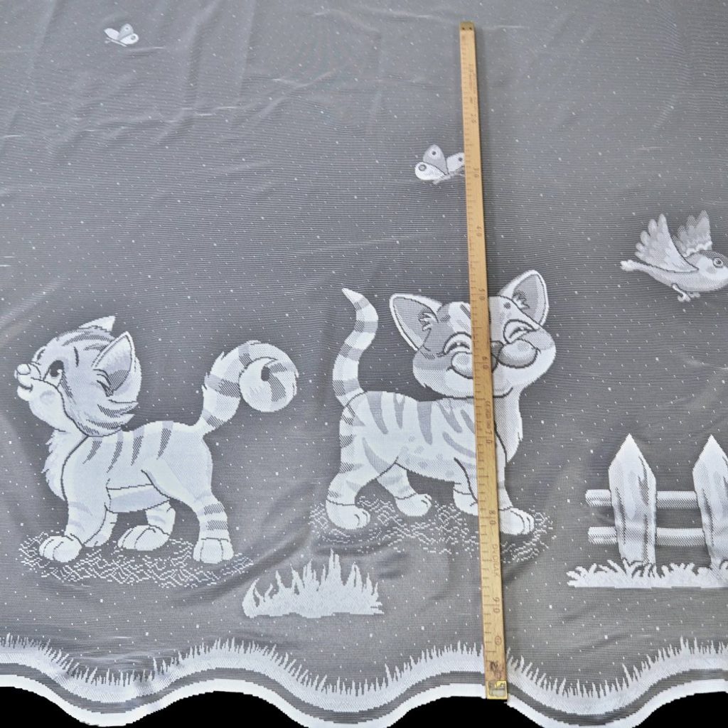 Roztomilá žakárová záclona s hravým motivem kočiček potěší všechny malé milovníky těchto mazlivých kamarádů. Svým veselým a hravým designem rozzáří a zpříjemní každý dětský pokojíček, dodá mu útulnou atmosféru a přinese do něj kousek hravosti. Kusová záclona je opatřena řasící stuhou F1 s pravidelnými sklady 1:2.