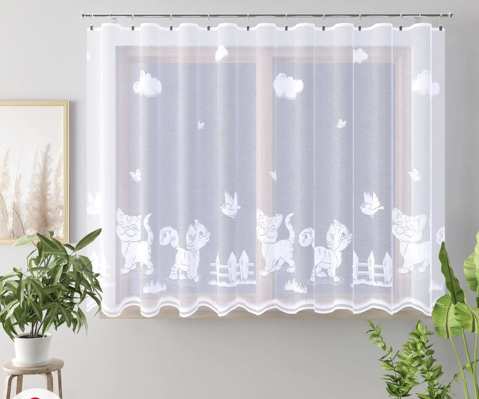 Roztomilá žakárová záclona s hravým motivem kočiček potěší všechny malé milovníky těchto mazlivých kamarádů. Svým veselým a hravým designem rozzáří a zpříjemní každý dětský pokojíček, dodá mu útulnou atmosféru a přinese do něj kousek hravosti. Kusová záclona je opatřena řasící stuhou F1 s pravidelnými sklady 1:2.