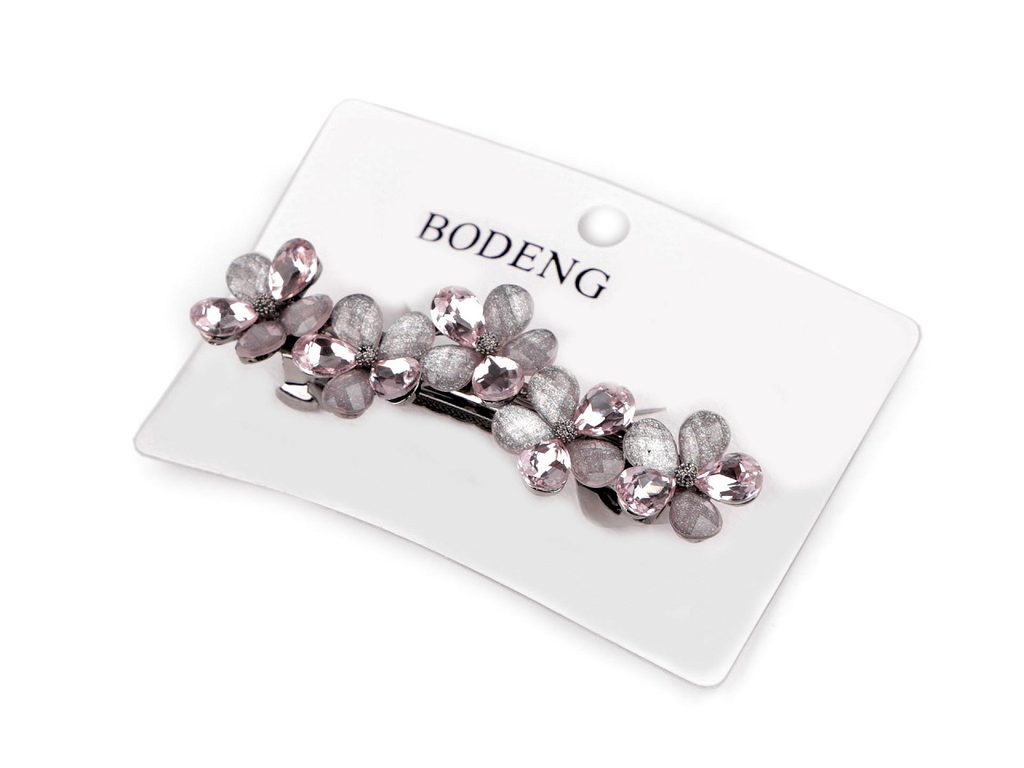Francouzská spona zdobená akrylátovými broušenými květy luxusně ozdobí váš účes. Má nádherný lesk, který přitahuje pozornost. Luxusně ozdobí slavnostní účes. Ať už máte jemné prameny nebo husté lokny, touto sponou snadno sepnete vlasy do copu nebo vytvoříte elegantní drdol, který bude vypadat, jako kdyby ho vytvořil profesionál. Spona má velmi kvalitní celokovové provedení. Zacvakávací mechanismus je pevný.