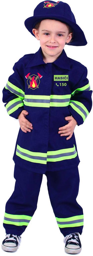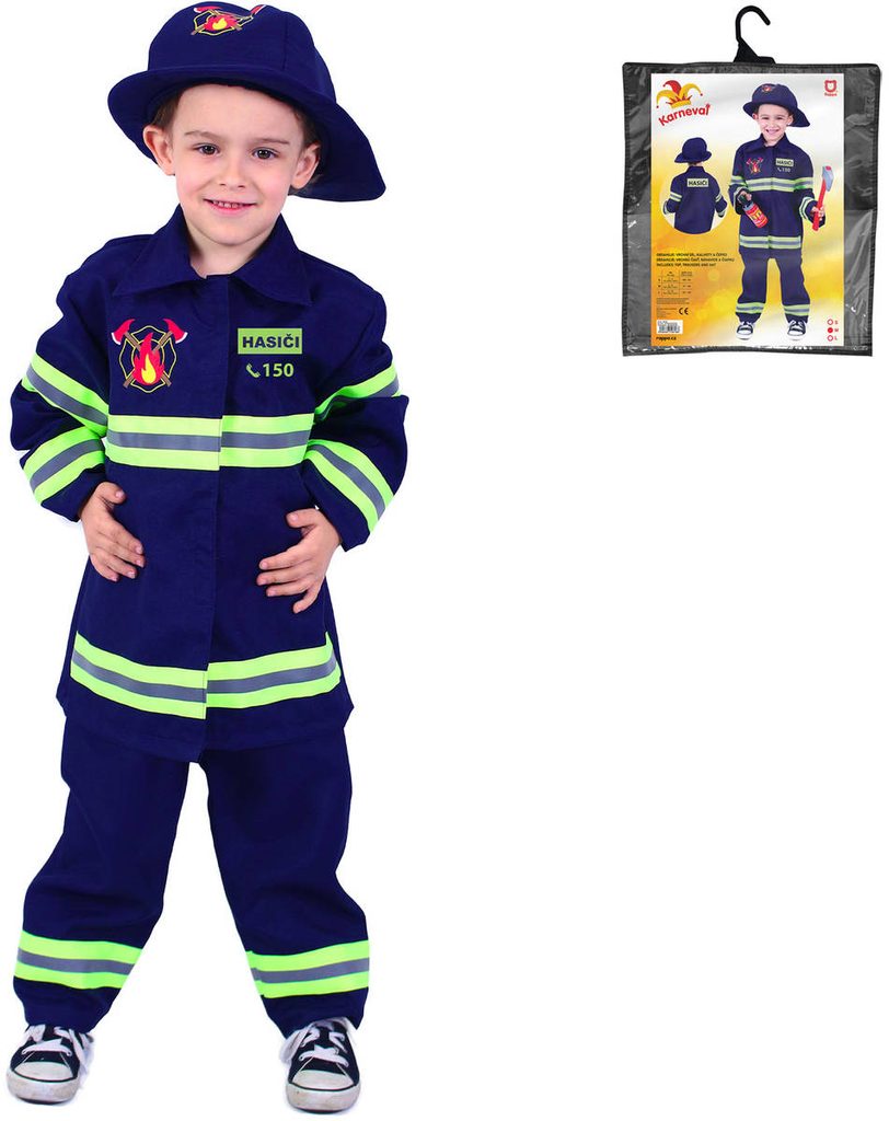 KARNEVAL Šaty hasič český potisk vel. M (117-128cm) 6-8 let *KOSTÝM*