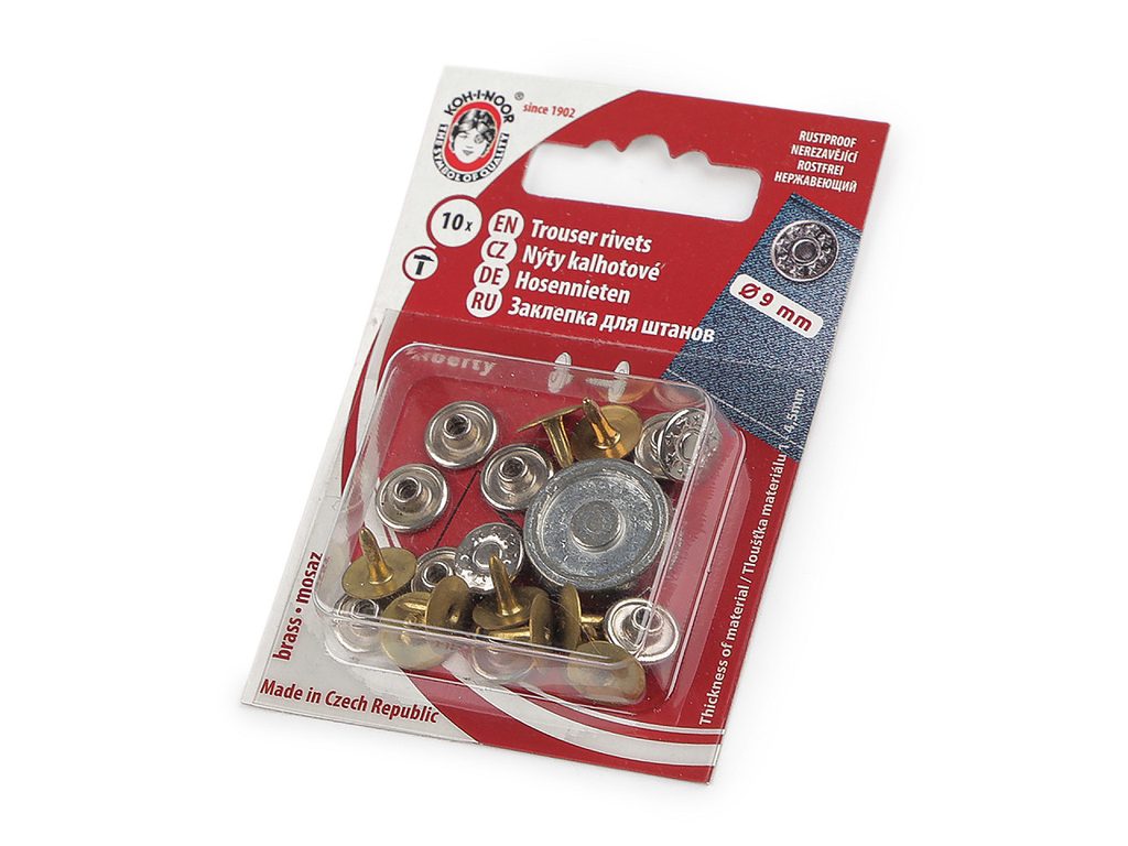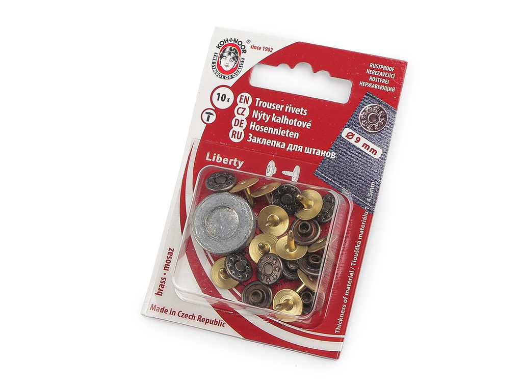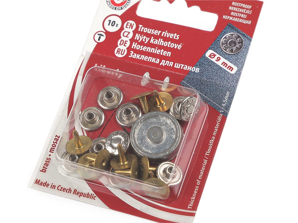 Stiskací knoflíky ANORAK průměr 15 mm, staromosaz, 10 ks na kartě, s návodem a příslušenstvím.