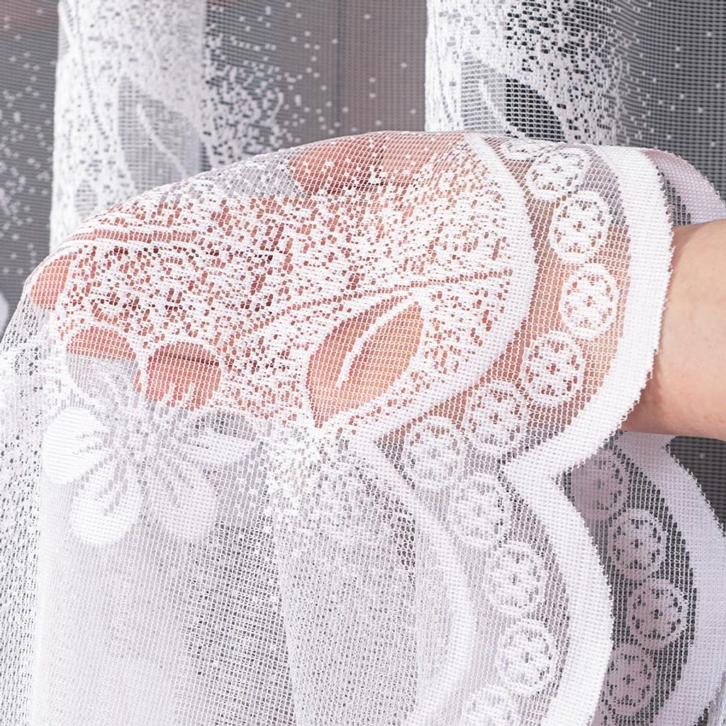 Elegantní záclona s floristickým vzorem, který vypadá na okně velice zajímavě. Záclona je v prodeji ve více výškách, vhodné také jako balkónový set. Záclona je zakončena bordurou ozdobných vlnek, které jí dodají efektivní vzhled. Kusová záclona je opatřena řasící stuhou F1 s pravidelnými sklady 1:2.