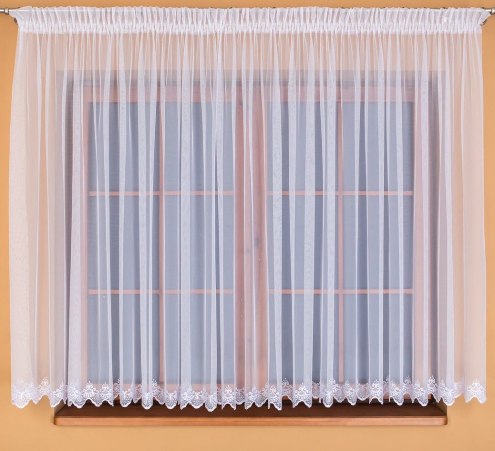 Záclona Mia je opatřena řasící stuhou Z3 s pravidelnými sklady 1:2. Záclona se hodí do obývacích pokojů či ložnic.