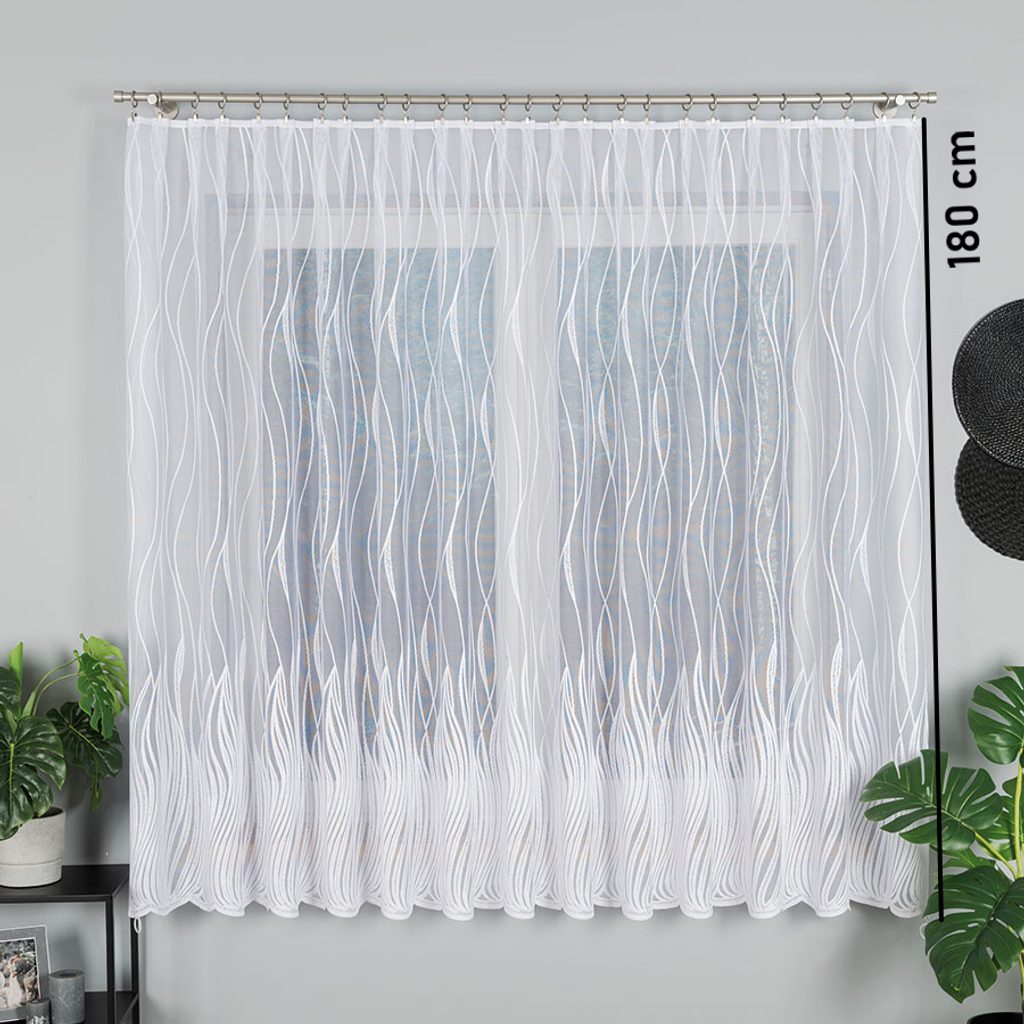 Záclona Mia je opatřena řasící stuhou Z3 s pravidelnými sklady 1:2. Záclona se hodí do obývacích pokojů či ložnic.