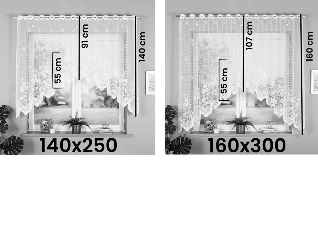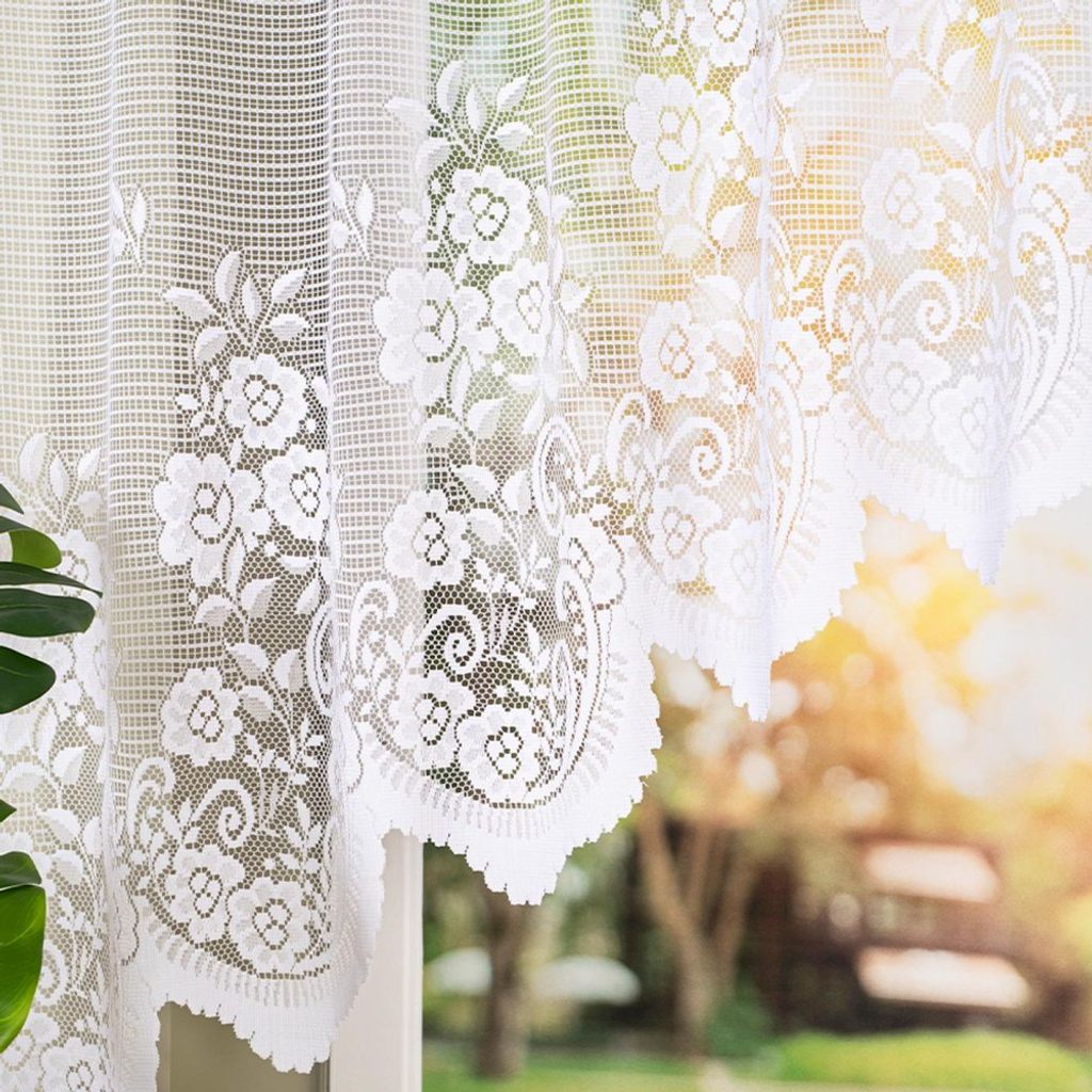 Žakárová záclona tkaná do oblouku s floristickým, spodním vzorem. Vrchní část je opatřena očky na zavěšení, které se v případě potřeby můžou i nažabkovat. Záclona se hodí především do kuchyní.
