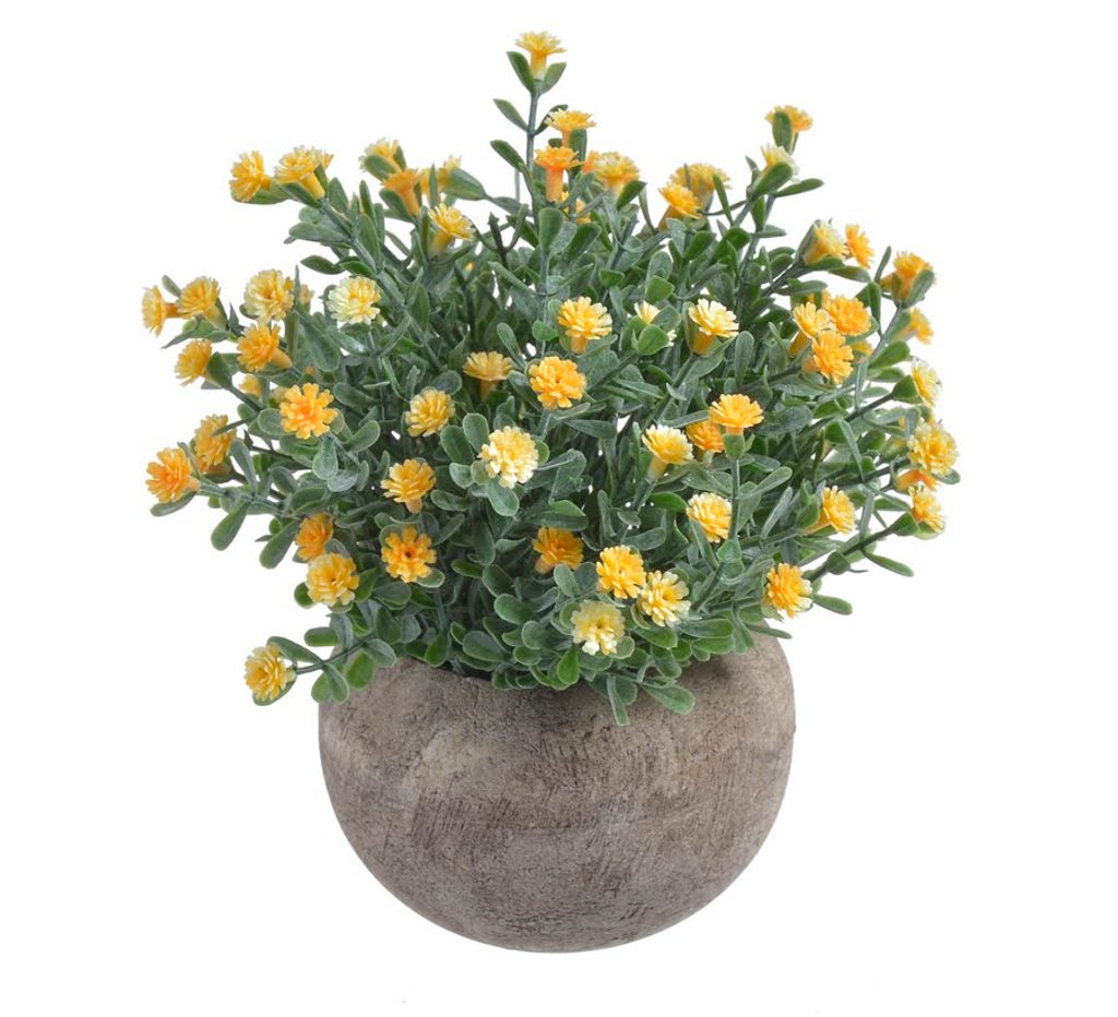 Umělé květinky v květináči, bezúdržbová dekorace