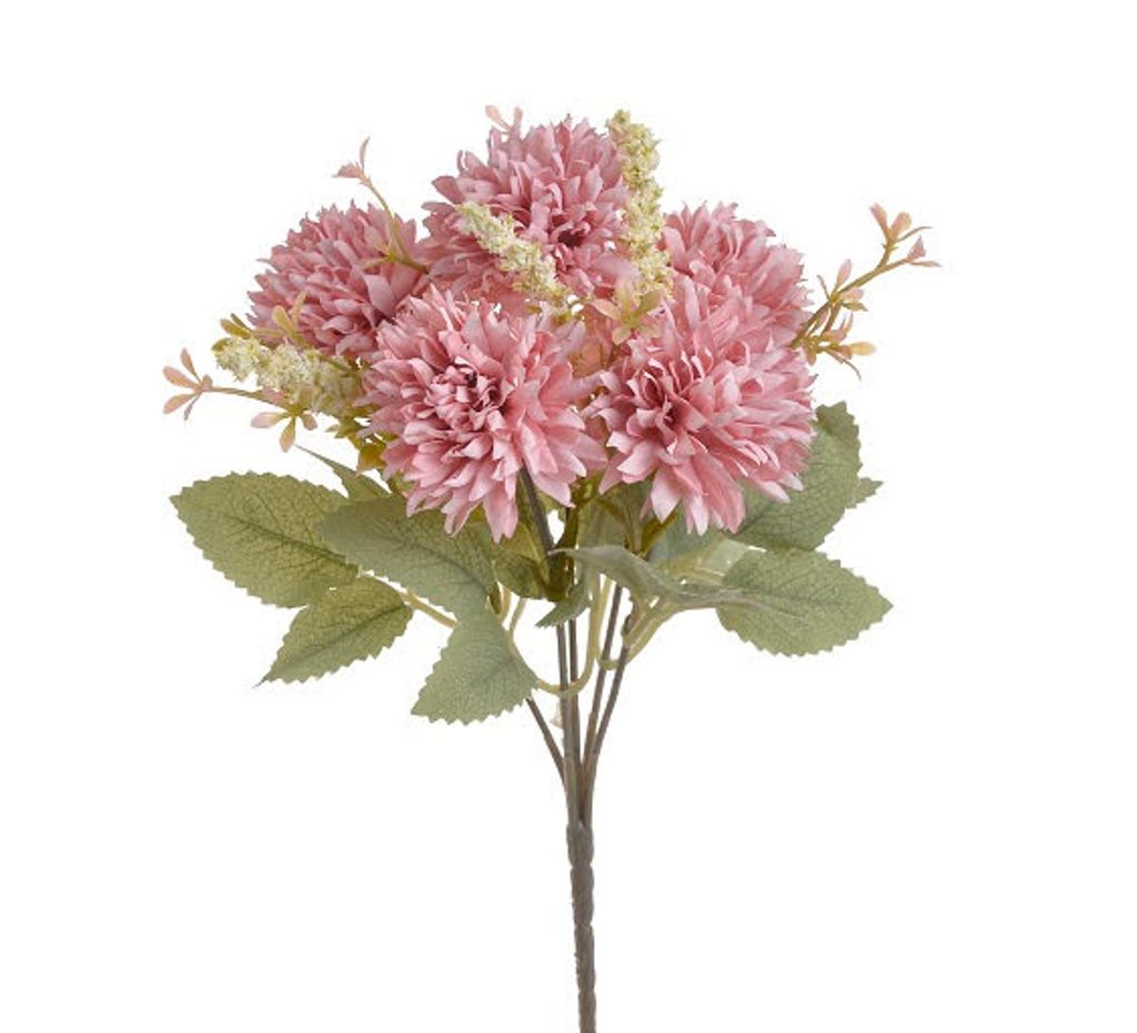 Kytice chryzantém s listy - růžová ▶