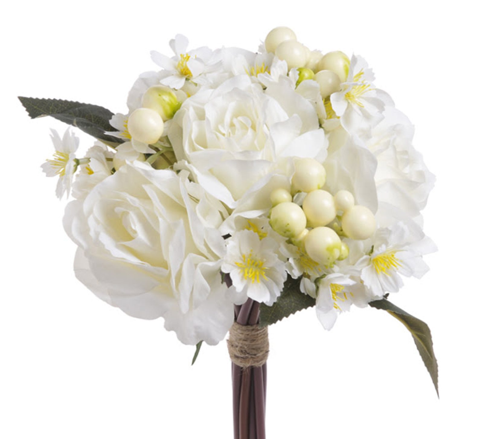Kytice růží s květy a bobulemi 10 ks - krémová