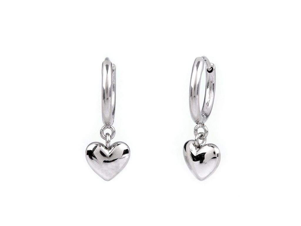 Náušnice z nerezové oceli kroužky, srdce s broušeným kamínkem