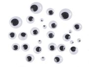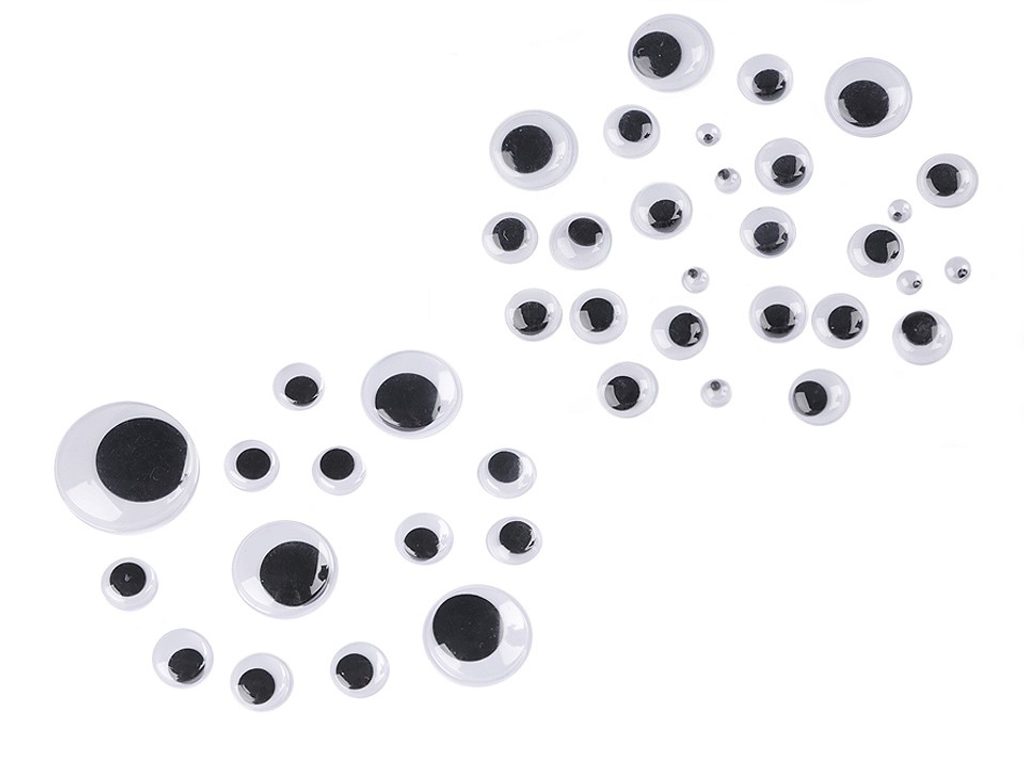 Plastové oči dodají výraz vyrobeným postavičkám nebo zvířátkům. Oči jsou určené k nalepení. Očka s pohyblivou čočkou najdou uplatnění například při technice scrapbooking, díky které originálně ozdobí přání, rámečky, fotoalba apod.