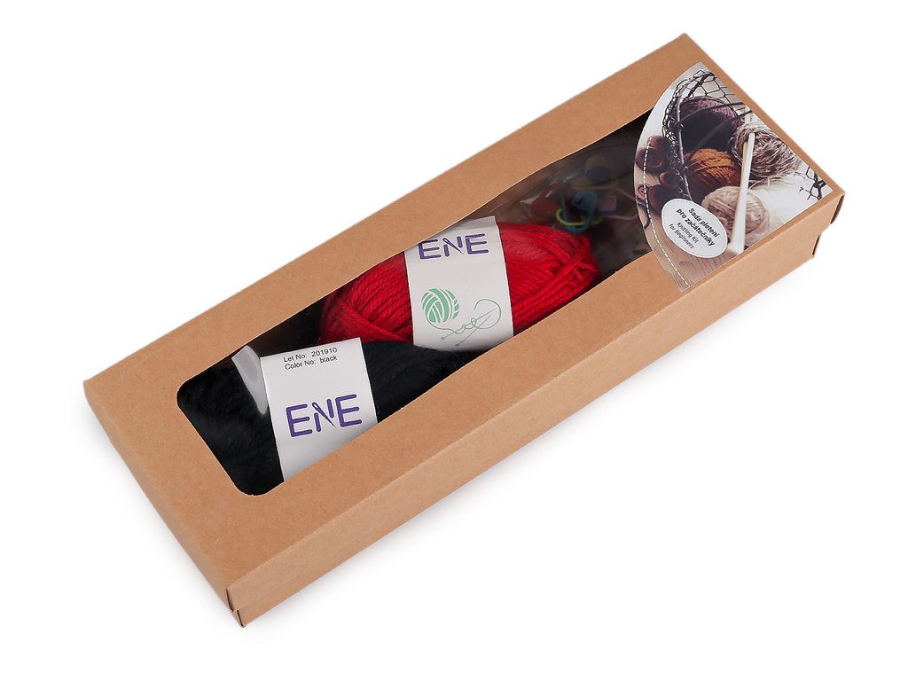 Pletací sada - 2 pomocné hliníkové jehly o průměru 2,5 mm a 4 mm, 2 jehly na vlnu - vel. 1 a 3, zachytávač oček/spona a počítadlo.