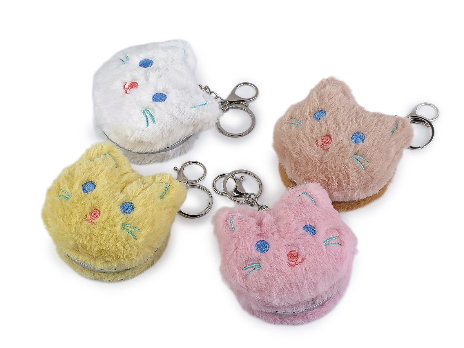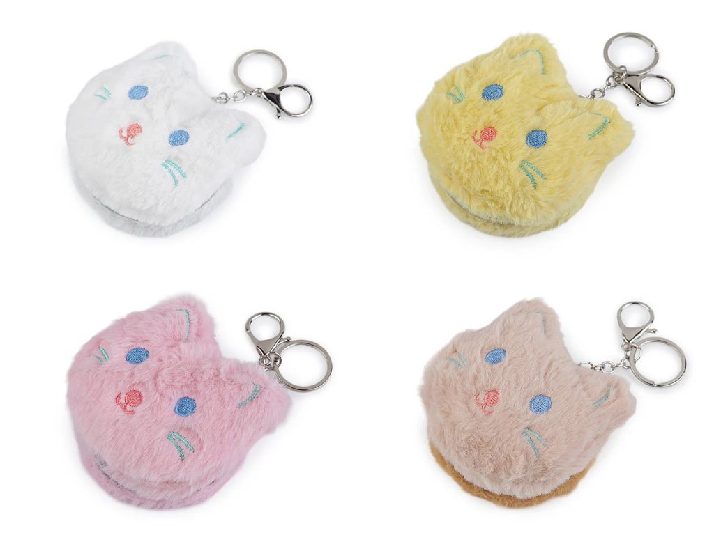 Plyšové kosmetické zrcátko / přívěsek na kabelku kočka