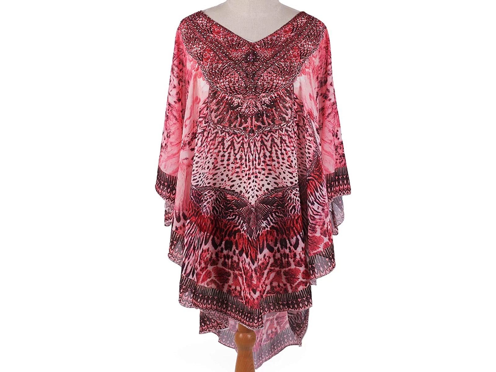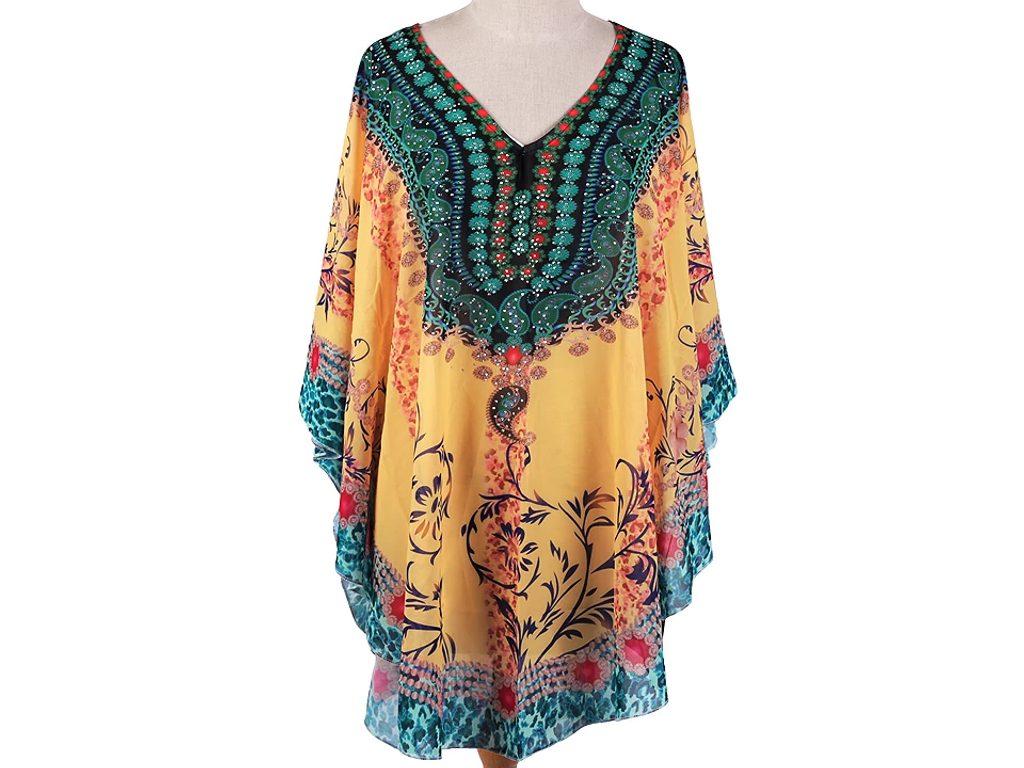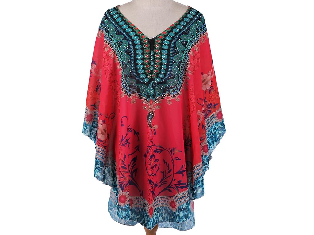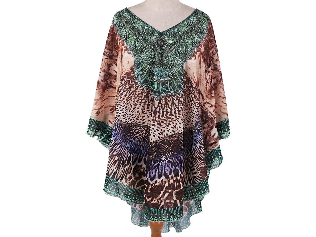 Jemné vzdušné viskózové pončo vám poslouží jako přehoz přes plavky. Zakryje to, co je potřeba, a zároveň působí sexy. Má univerzální velikost a je dozdobené třpytivými kamínky.