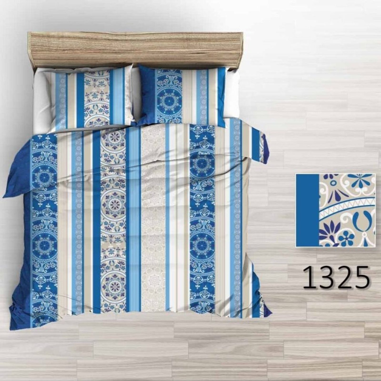 Povlečení zdobí vzory mandal a pruhů v béžových a modrých barvách. Povlečení je opatřeno oblíbeným zipovým uzávěrem, který doporučujeme při praní uzavřít.