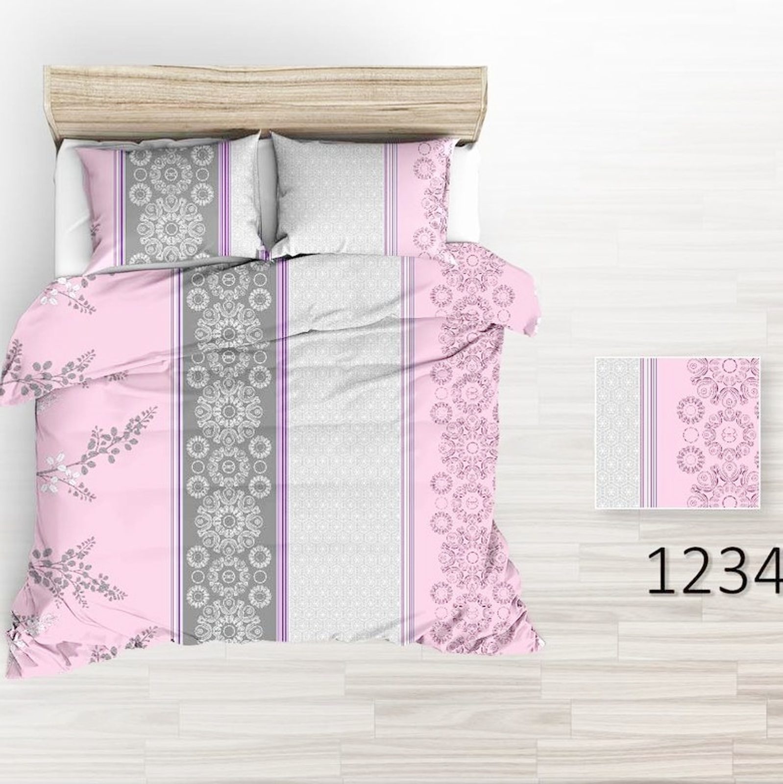 Povlečení krepové Růžová,Šedá 80/133