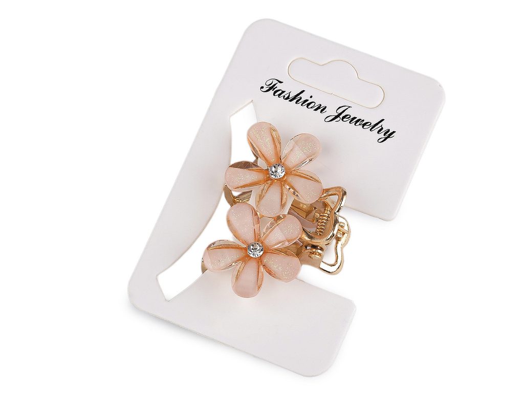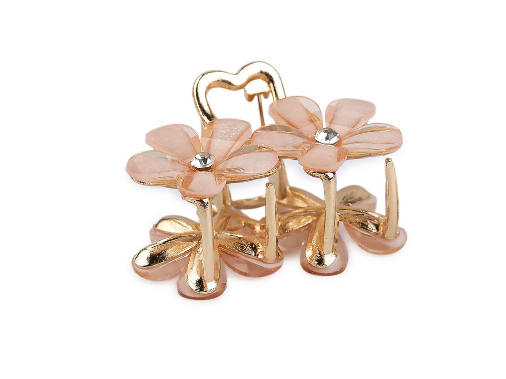 Skřipec do vlasů kovový s broušenými kamínky květy