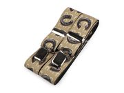 Jsou kvalitní české výroby, elastický materiál umožňuje pohodlné nošení. Zadní vsadka z eko kůže jim dodává stylový vzhled. Ke kalhotám se upevňují na tři žabky - dvě vpředu a jednu vzadu. Ať už se chystáte na tematickou párty, jezdecký závod nebo chcete jen dodat svému oblečení originální prvek, tyto šle vám budou skvělým společníkem.