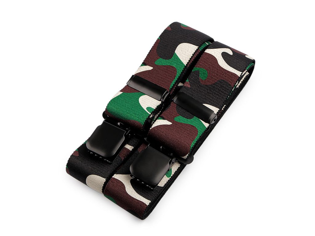 Kšandy s maskáčovým potiskem potěší muže, kteří chtějí přidat do svého šatníku nádech originality. Mohou je bez obav kombinovat s ležérním i sportovnějším oblečením a využít je jak na výletech do přírody, tak při uvolněných setkáních s přáteli.