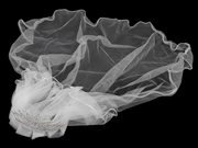 Věneček zdobí krajka, textilní květy a korálky. Závoj má obšitý okraj a je dlouhý cca 60 cm.