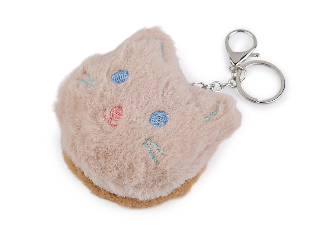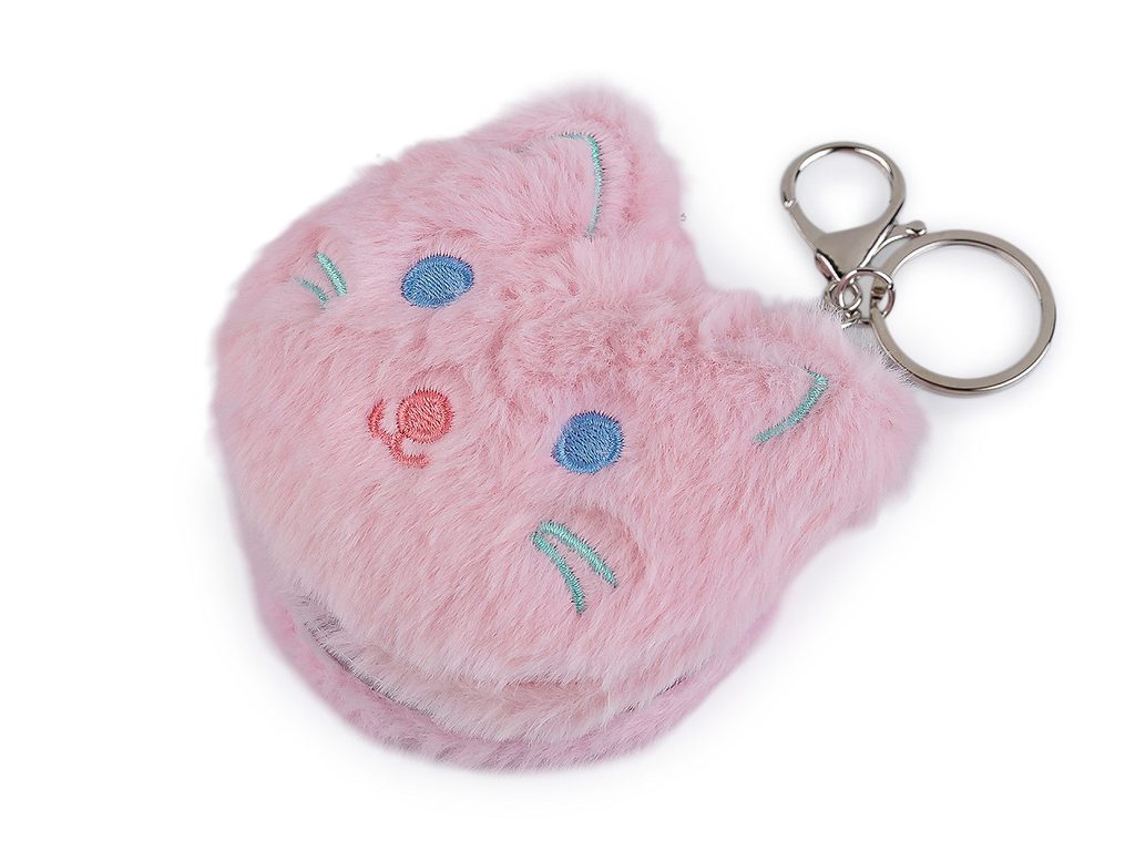 Plyšové kosmetické zrcátko / přívěsek na kabelku kočka